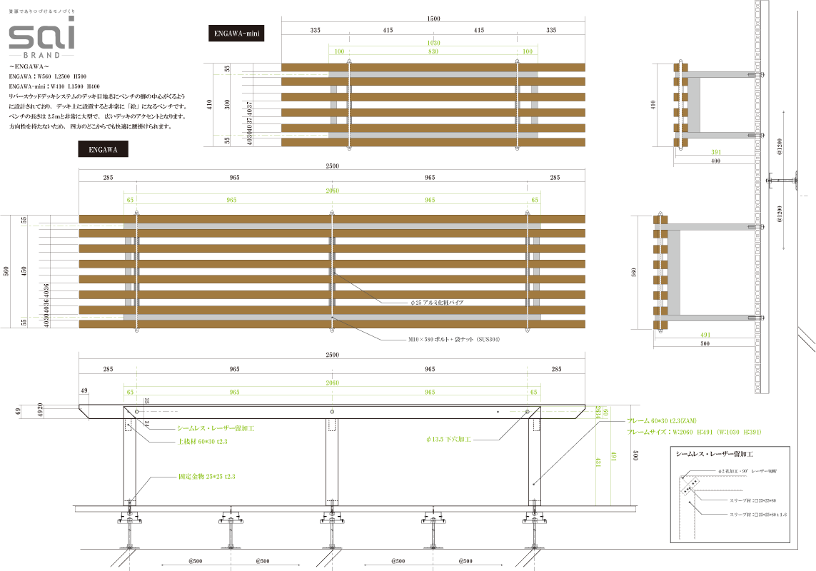 「ENNGAWA」を普通サイズのベンチとして小型化した製品です。 |