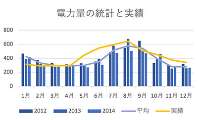 | 年 | 月 | 電気使用量(kwh) | ||